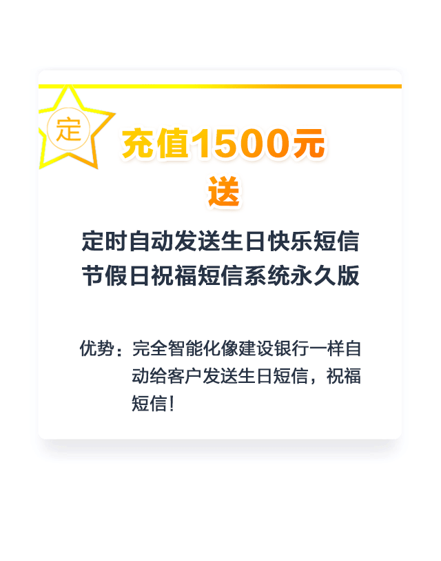 優(yōu)勢(shì):完全智能化像建設(shè)銀行一樣自動(dòng)給客戶發(fā)送生日短信,祝福短信!